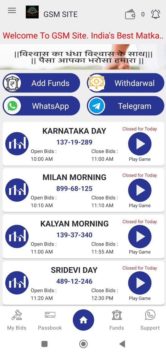 GSM Site is a free Android app that lets users participate in and check the results of online Matka games. Matka is a widely popular form of entertainment in India. The GSM Site app provides live and lightning-fast results for games like Shridevi, Milan, Kalyan, Rajdhani, Time Bazar, and more.